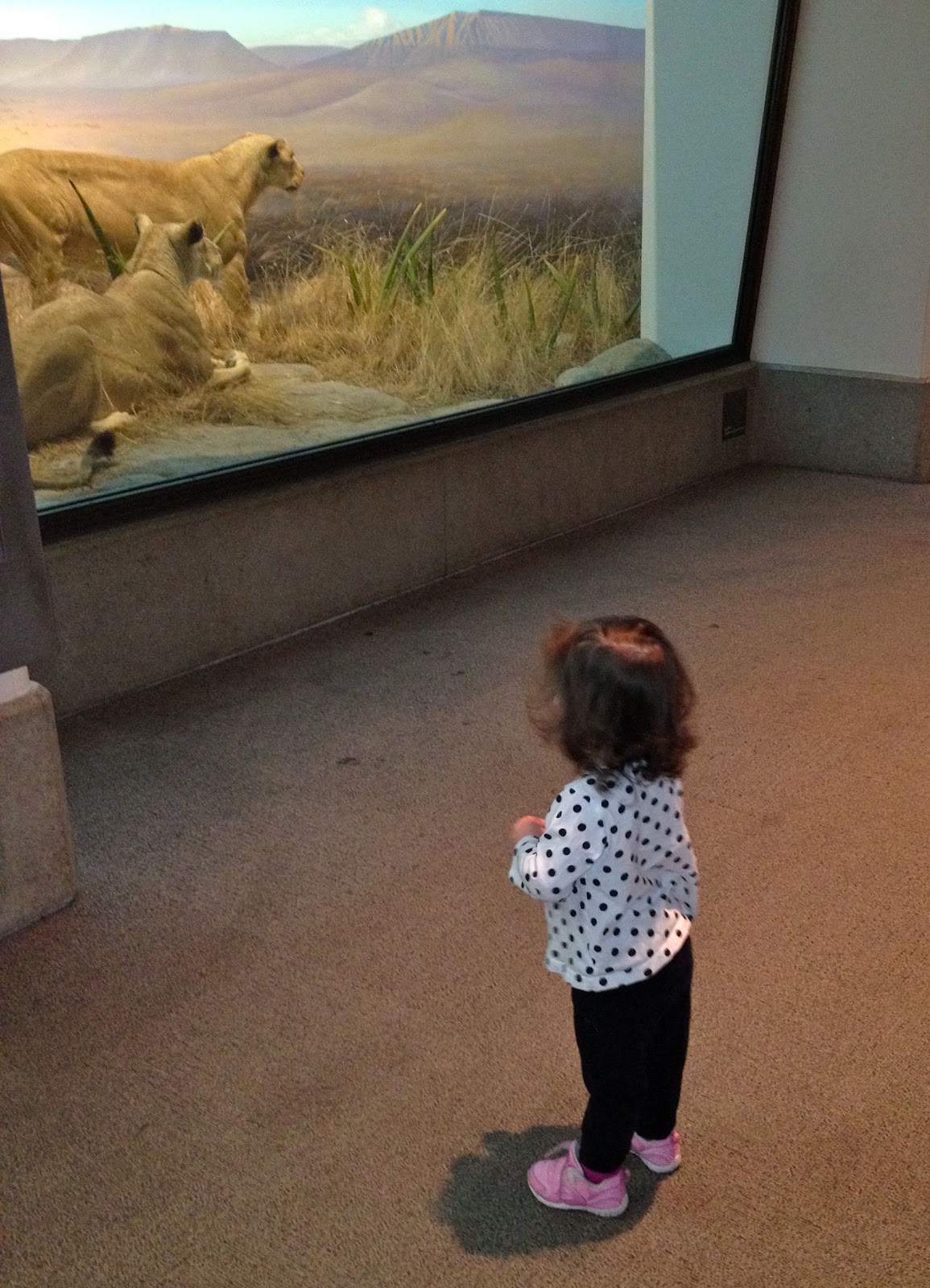 There was a penguin feeding scheduled for 10:30 and Lucy's family wanted to see it, so we migrated up from the aquarium to the African hall. This has always been a little weird to me. The African hall is a collection of about 12 taxidermied dioramas, capped at the end by a display of live African penguins. There is some sort of disconnect there that always throws me off.