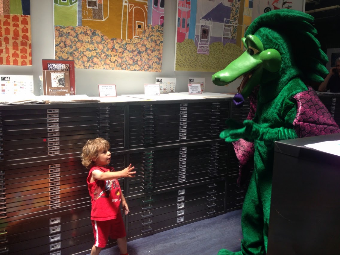 Flax Art Supply for their "Medieval Children's Craft Fair". Flax is a great store with all manner of supplies for real artists and 2-year old finger painters. The Fair was a free event for kids with craft tables set up throughout the store where they could try their hands at different projects and take them home. It was hot inside and they got cranky at times, but once we'd watered them appropriately, they seemed to be really enjoying themselves.
